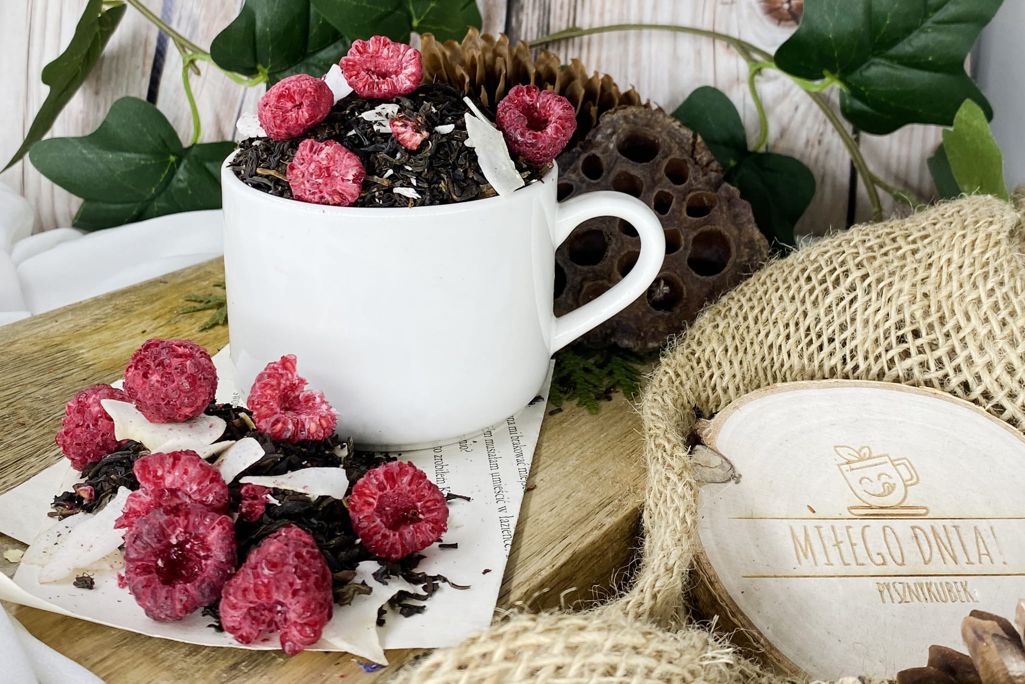 Herbata czarna Raffaello Malinowe to niesamowicie delikatne połączenie maliny oraz kokosa, które świetnie sprawdza się jako kompozycja herbaty czarnej.