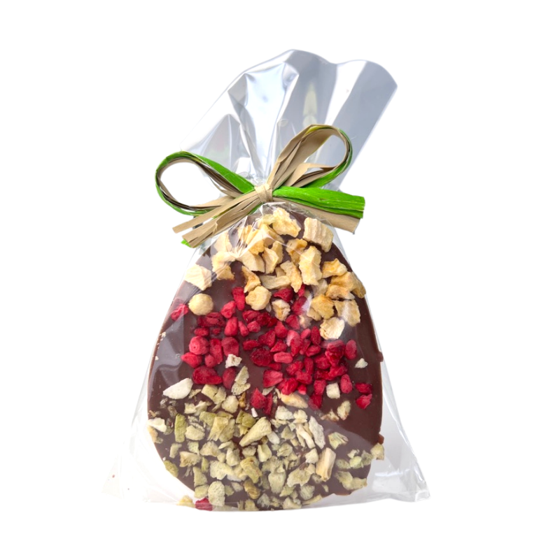 Mini pisanka z czekolada mleczna z malinami brzoskwinią i kwi